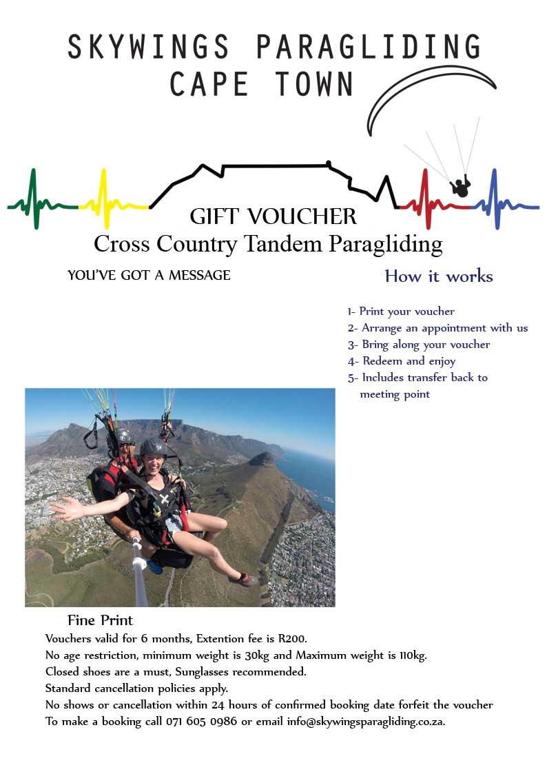 Cross Country Tandem Paragliding Gift Voucher
